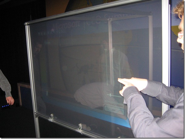 Microsoft vient de présenter une nouvelle interface Multi-Touch verticale à la Minority Report appelée TouchWall. Dans cette nouvelle configuration plusieurs vidéo-projecteurs reliés à un PC sous Vista projettent les images sur un écran en plexiglas. Une caméra vidéo associée à 3 faisceaux laser infrarouges balayent la surface de l’écran afin de capter les mouvements effectués sur celui ci et permettant ainsi toutes les manipulations que nous avons déja vu sur les autres interfaces du même type (déplacer, clicker, zoomer/dézoomer, etc….).