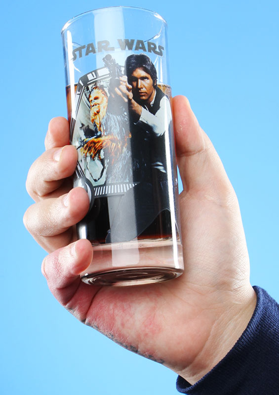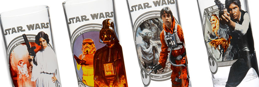 Inviter Dark Vador, Luke Skywalker, la Princesse Leia, Han Solo, Yoda, Chewbacca et R2d2 à l’apéro, oui c’est possible, enfin presque… Oubliez les pots de moutarde transformés en verres et ceux que vous avez collectionné en achetant des menus McDonald’s, pour vos prochaines soirées de projection marathon «Star Wars» optez plutôt pour ce set de 4 verres imprimés à l’effigie des personnages de la légendaire Saga disponible chez ThinkGeek au tarif de 15.99$.