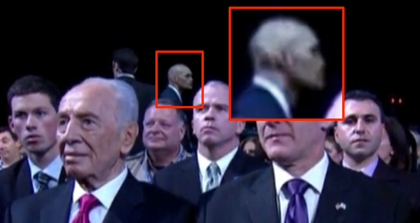 Montage de deux vidéos enregistrées à l’occasion d’un discours que Barack Obama a récemment donné durant la conférence de l’APIAC, la vidéo qui suit révèle la présence sur place d’une créature appartenant très probablement à une Race reptilienne… Créature travaillant de toute évidence pour les services de la protection rapprochée du Président des Etats-Unis…