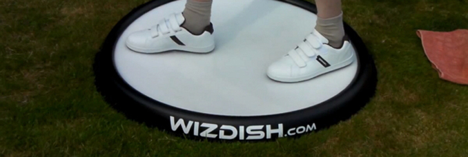 Accessoire de réalité virtuelle/augmentée, le WizDish du nom que lui a donné son créateur est comme vous pouvez le voir sur la photo ci-dessus un espèce de tapis rond sur lequel vous êtes censé vous tenir debout. Bourré de capteurs, cet accessoire pour Xbox 360 qui communique avec le système de reconnaissance de mouvements Kinect va détecter ceux de vos pieds pour les transposer dans l’univers du jeu qui tourne sur votre console. Jusque là, l’idée paraît séduisante mais détourons nos yeux du papier pour jeter un coup d’œil à la vidéo qui suit…