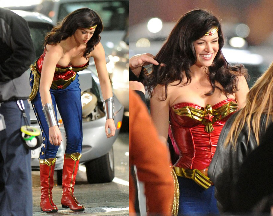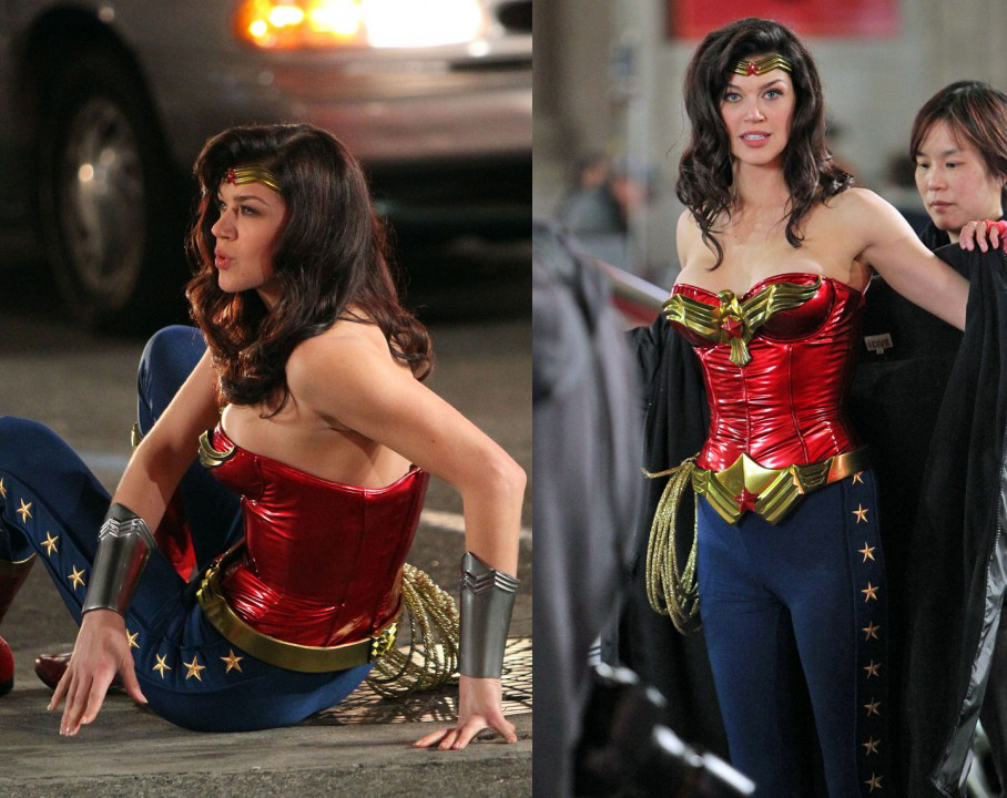 Etant donné qu’un grand nombre d’entre vous a apprécié la première photo officielle (cliquez ICI pour voir cette photo) de la charmante Adrianne Palicki dans sa combinaison de «Wonder Woman» version 2011 (combinaison qui après avoir fait couler beaucoup d’encre a finalement été modifiée), je vous propose de poursuivre avec une série de nouvelles photos ainsi qu’une vidéo capturées sur le tournage du remake TV de la série originale.